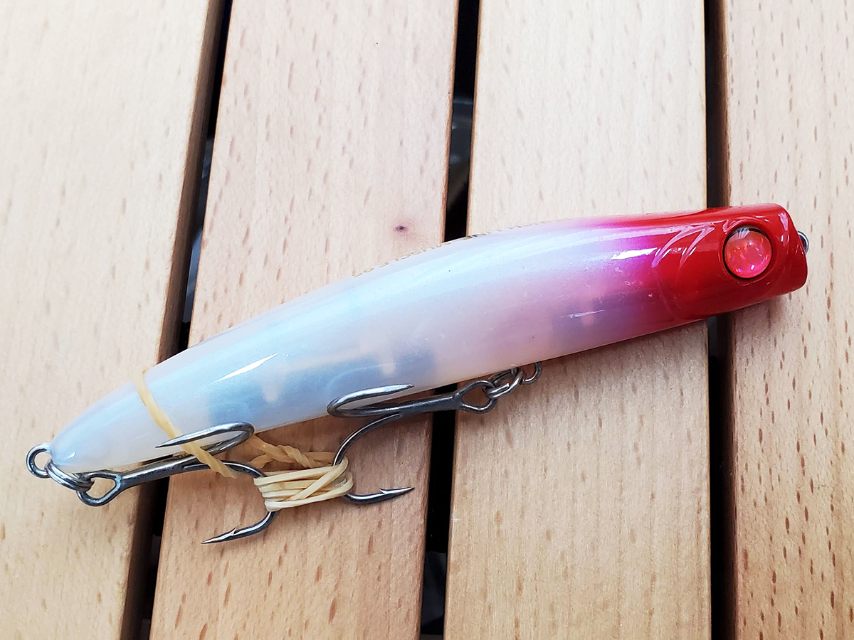 ヒットルアーはアピア パンチラインマッスル95 レッドヘッドパールカラー。