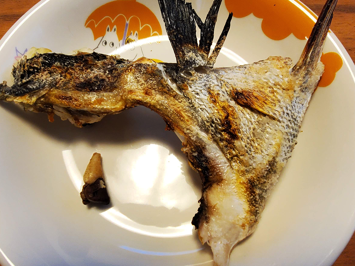 こちらはカマ焼きの画像ですが命を無駄にしたくないので身もアラも心臓も余すことなくいただきましたが味は、、、、それ以降港湾エリアで釣ったシーバスは一切食べておらず、その辺りで察していただければと思います。笑