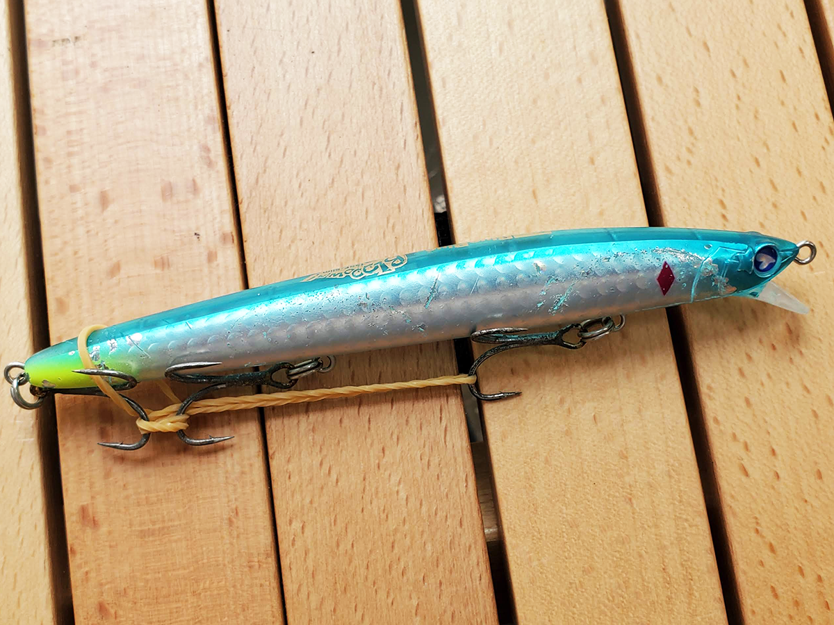 今回は前回釣果を上げたブルーブルーさんのブローウィンを中心にルアーローテーションを組みました。流れがある時は125Fのデッドスローリトリーブ、ドリフト、流れがない時は同じく125F、140S、165Fの早巻き、ツイッチ、ジャーキング。