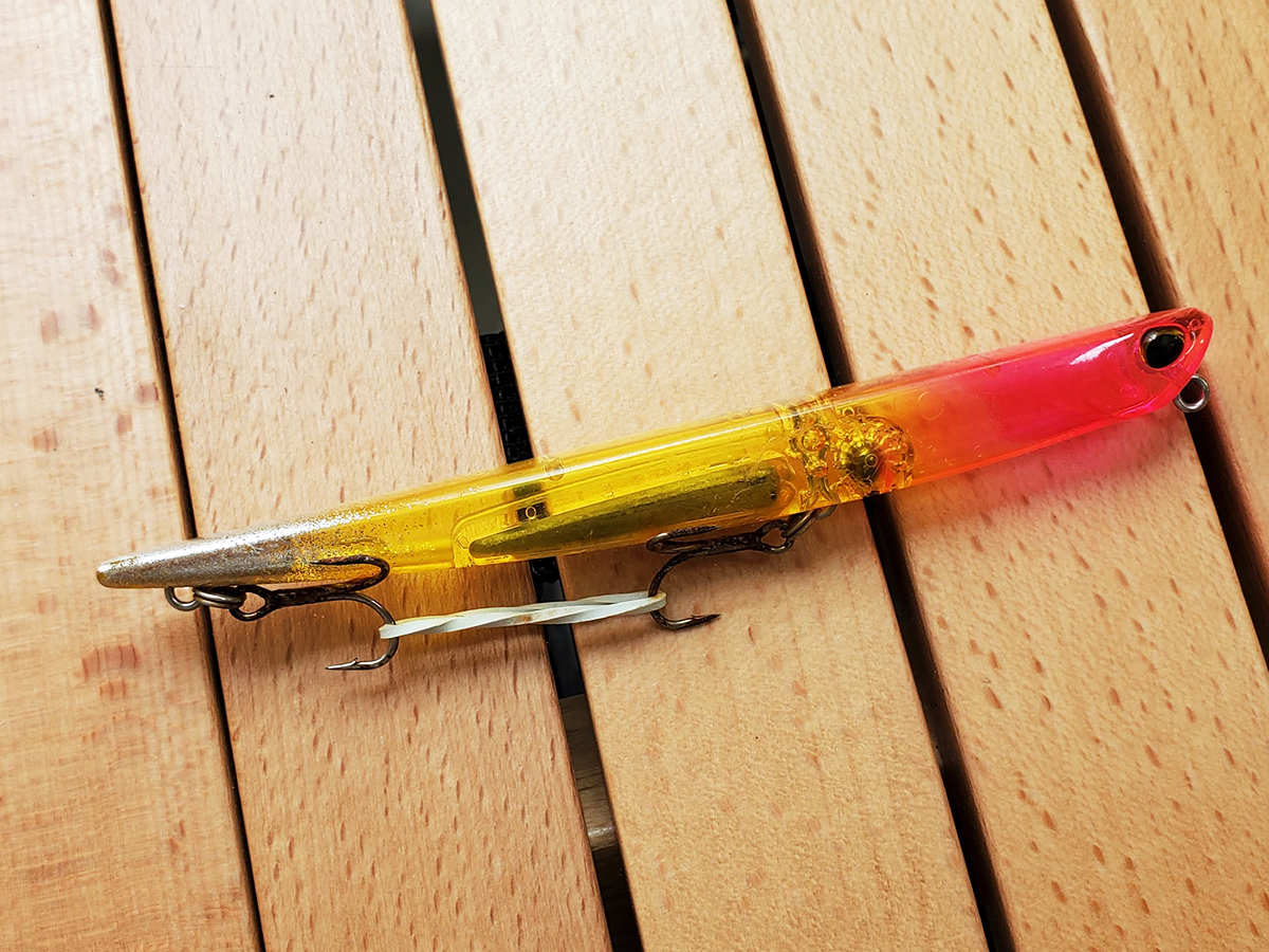 マニック115を6色とフィールを3色というルアー構成で挑みましたが結果は、マニック115のピンクスカッシュというクリア気味のカラーが当たりでした。