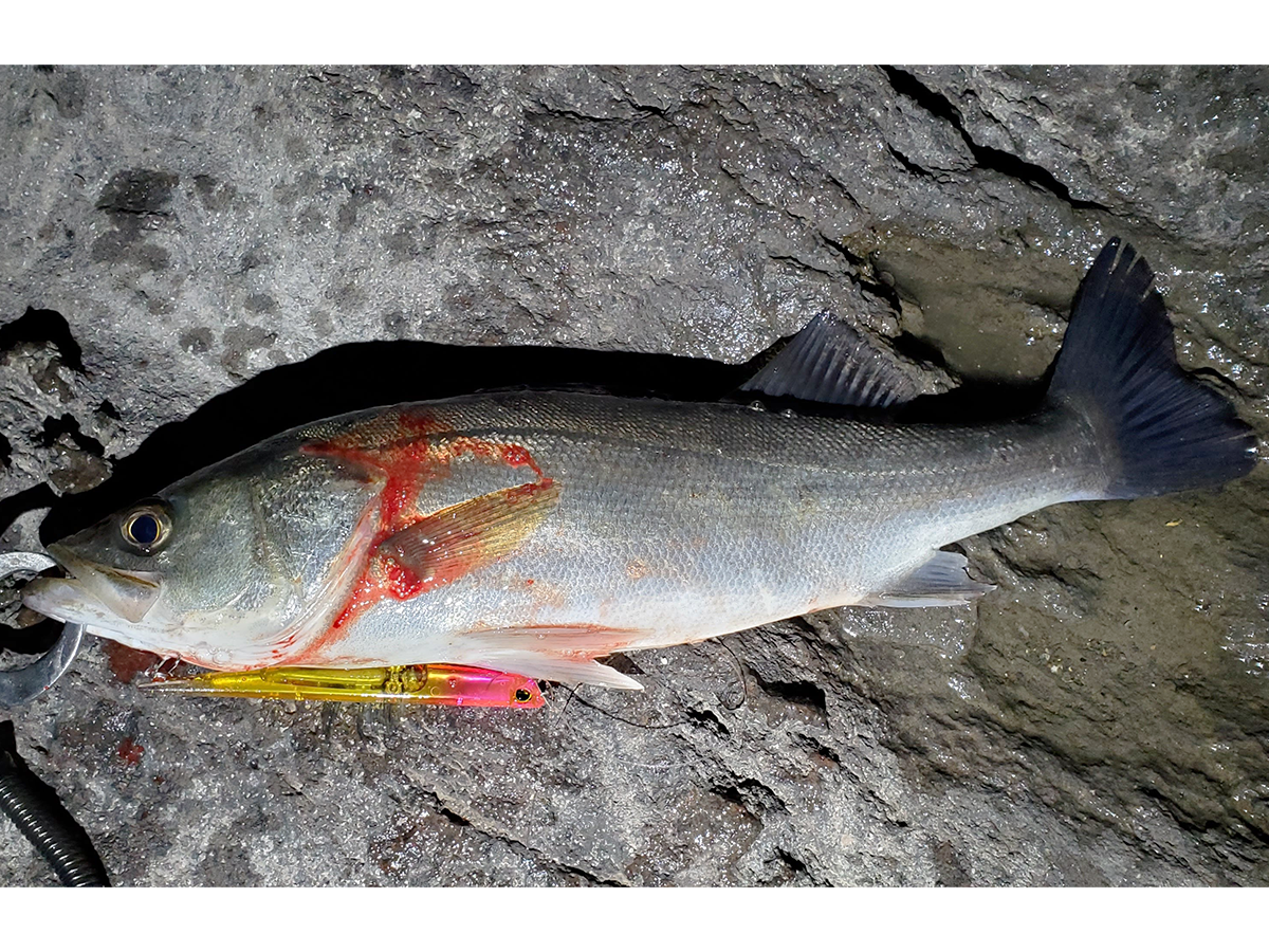 3バイト、3ヒット、1キャッチということは2本バラしているということですが、この2バラシが惜しかった、、、2本とも足元まで寄せたのですがエラ洗でルアーが抜けてしまいました。。。涙