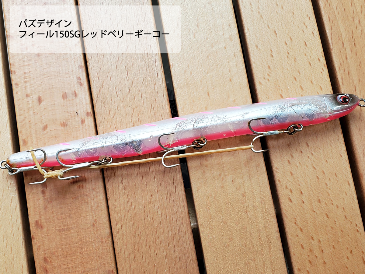 また、フィール150sgは小さなツイッチアクションを入れ、その後のただ巻きのタイミングで食ってくることがあり、この日限定かもしれませんが着水後軽いツイッチ1‐2回、5回巻いて、またツイッチのセットを3-4回繰り返した後のただ巻きというメソッドが良いシーンがありました。