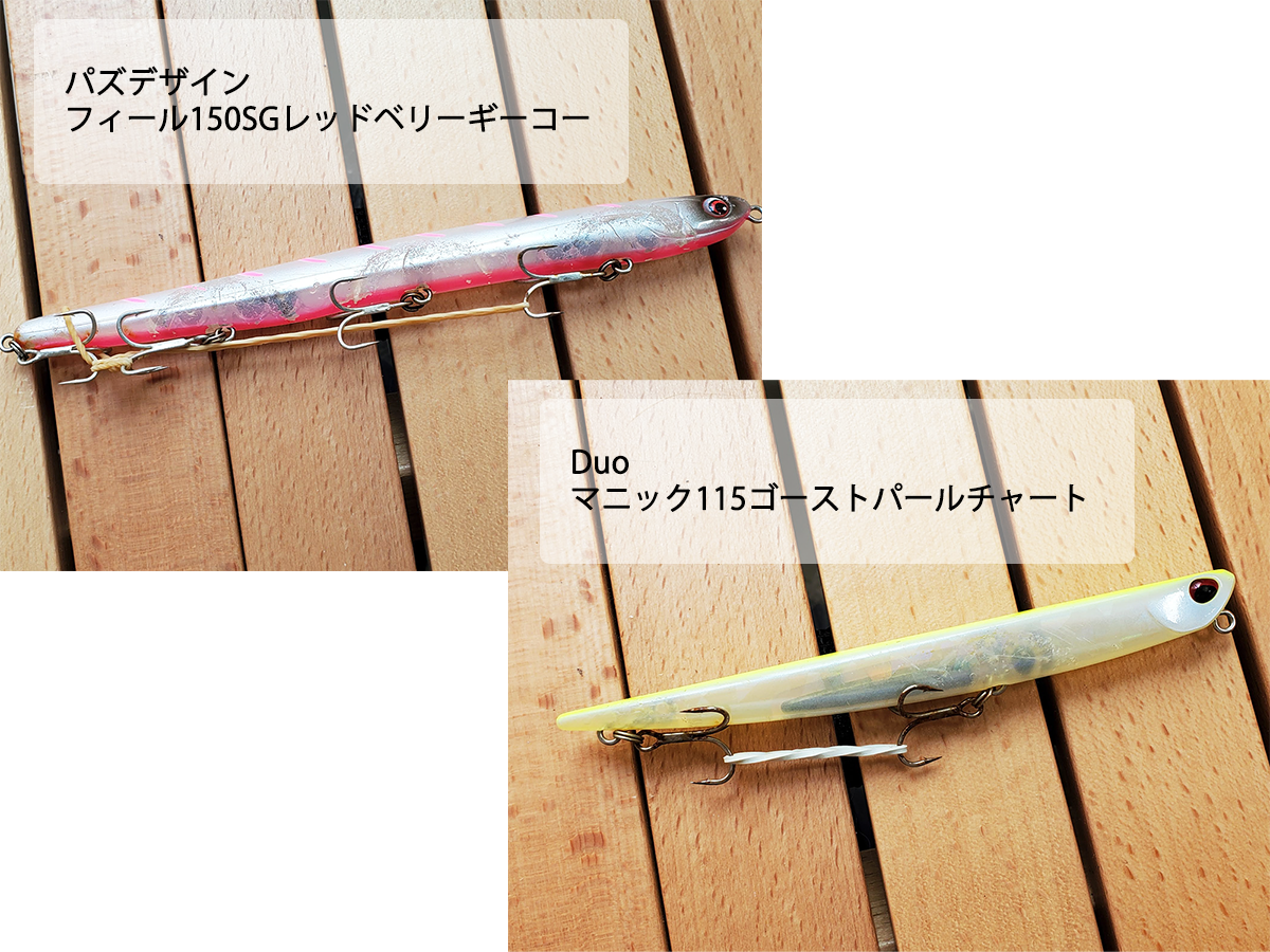 ルアーもバチパターンに狙いを定め、前回同様マニック115を6色とフィールを3色というルアー構成に加えて前回からマニック135を1色導入し挑みました。