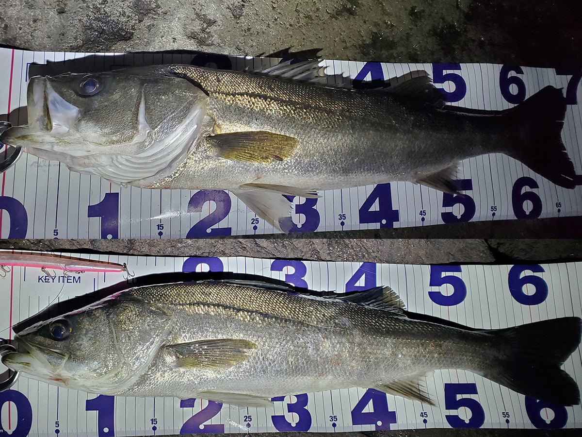 また、大潮だったこともあり流れもかなり出ていたのですが傾向的に流れが出ている時は大型が、流れがあまりないときは小型が釣れた印象を持ちました。これももしかすると流れがあるほどベイトは流されやすく、シーバスからすると捕食しやすく、それを知っている大型がそのタイミングで口を使うのかもしれません。